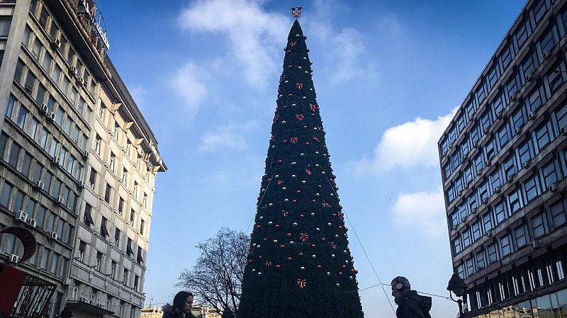 Visoko je 18 metara i ukrašeno s 200 crvenih kuglica. Gradonačelnik Siniša Mali (SNS, konzervativna), koji je rekao da je “iznenađen iznosom”, najavio je raskid ugovora. Demokratska stranka (opozicija, lijevi centar) ironično je pozvala Beograđane da pod plastičnim drvetom ostave svoje želje za poklone vrijednosti 83.000 eura.