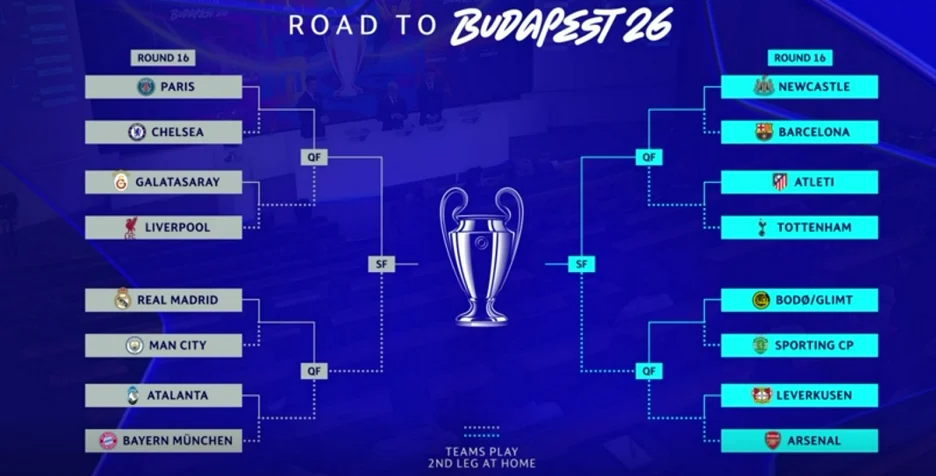 Prve utakmice osmine finala se igraju 10. i 11. marta, a revanši su na rasporedu sedam dana kasnije, odnosno 17. i 18.3. marta.