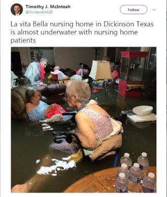 “Sve se desilo veoma brzo. Pričala sam sa svojom majkom i rekla mi je kako je u tri sata ujutro primila poziv da su toaleti poplavljeni. Ona i moj očuh su odmah otišli tamo i kad su stigli voda je bila do vrata. U roku od 15 minuta nivo vode je porastao od gležnjeva do struka. Zvali su hitnu pomoć, ali su im rekli da ne mogu doći do njih, tako da su ostali zaglavljeni. Noć prije pričala sam s majkom i sve je bilo uredu, kiša je tek malo padala. Sljedeće jutro sam se opet čula s njom, a umjesto odgovora poslala mi je sliku i rekla kako im niko ne pristiže u pomoć. Zato smo fotografiju postavili na Tviter kako bismo privukli pažnju, ne bi li im neko pomogao”, rekla je Kim Mekintoš, kćerka vlasnice kuće.