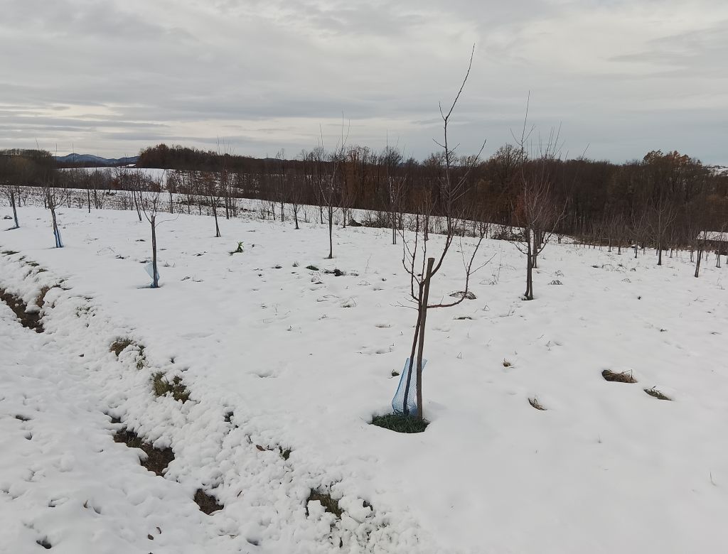 Зимски период обично не прави значајније проблеме правилно формираним воћкама, али заштита од дивљачи остаје кључна, па се многи воћари одлучују за кречење које најефикасније одбија зечеве у хладним мјесецима. Снијег може узроковати штету само на културама слабијег хабитуса, гдје је потребно повремено отресање како не би дошло до ломљења грана.
