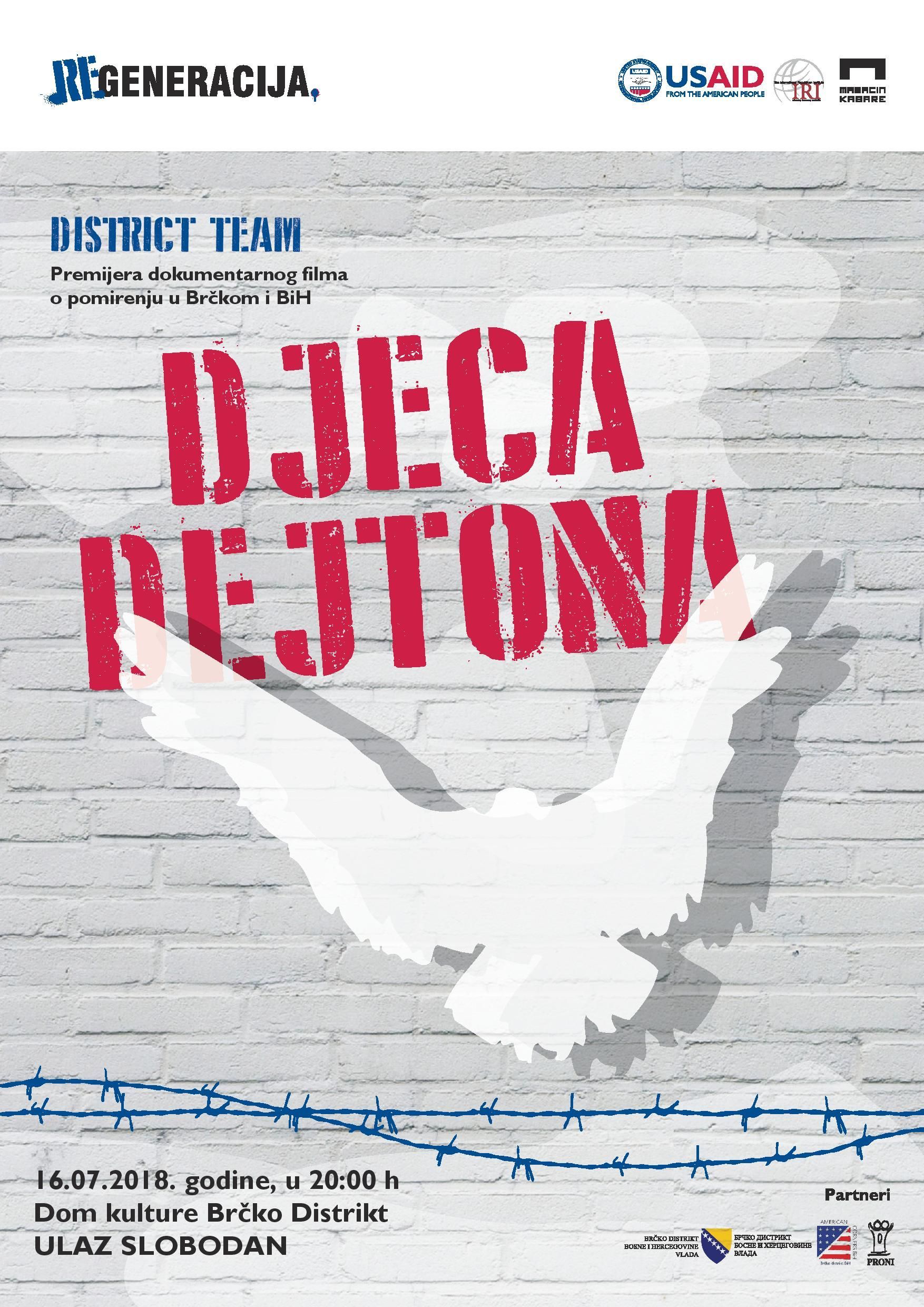 Dokumentarni film pod nazivom „Djeca Dejtona“ koji govori o pomirenju i suživotu u Brčkom, ali i cijeloj BiH, bit će premijerno prikazan 16. Jula u 20:00 sati u Domu kulture, Brčko Distrikt.