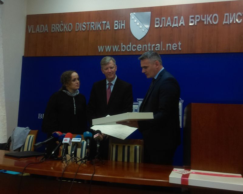 Градоначелник Синиша Милић и предсједник Скупштине Кадрић уручиили су пригодне поклоне супервизору Бертону, који се данас састао и са представницима правосудних институција у дистрикту.