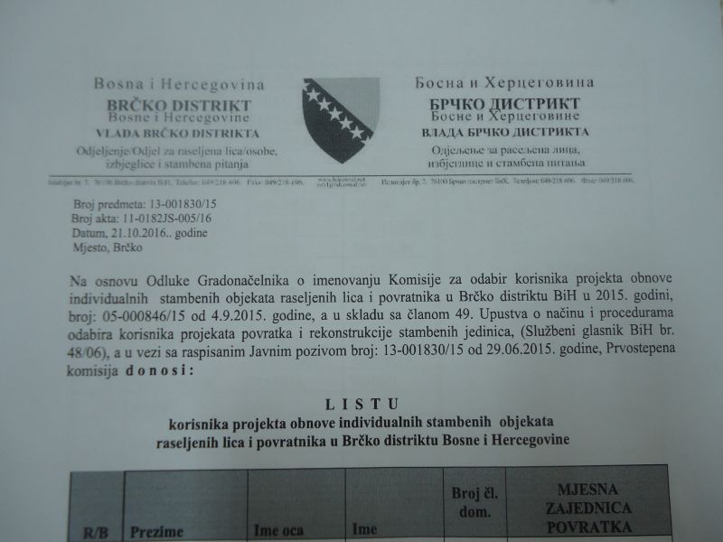 Odlukom Vlade Brčko Distrikta od prošle nedjelje stekli su se uslovi za stambeno zbrinjavanje 40 porodica sa preliminarne liste korisnika iz 2015. godine.