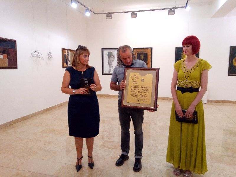 Na izložbi je sinoć svečano uručena i “Zlatna paleta”, priznanje koje Umjetnička galerija dodjeljuje za poseban doprinos u radu likovne simpozijum radionice. Dobitnik “Zlatne palete” za 2017. godinu je Miomir Mišo Vemić, akademski slikar iz Nikšića. Sinošnjim otvaranjem izložbe ozvaničen je početak rada i ovogodišnjeg likovnog simpozijuma koji okuplja 10 umjetnika iz zemlje i regiona.